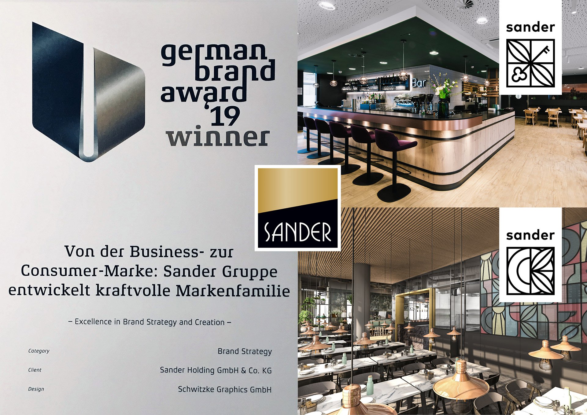 Auf dem deutschen Food-Service-Markt gehört die Sander Gruppe seit mehr als 45 Jahren zu den wichtigsten Playern. Nun erobert das Unternehmen auch den Consumer-Markt. Begleitet wird Sander bei diesem Schritt von der Agentur Schwitzke Graphics. „Unser Ziel ist es, die Marke Sander auch für B2C-Kunden erlebbar zu machen, die Markenfamilie weiterzuentwickeln und gleichzeitig Best-Practice & Learning-Plattformen für unsere B2B-Kunden zu schaffen. Wir freuen uns gemeinsam mit Schwitzke über diesen schönen Preis, der uns auf unserem Weg bestätigt und unsere zukunftsorientierten Entscheidungen bekräftigt“, so Niebling.